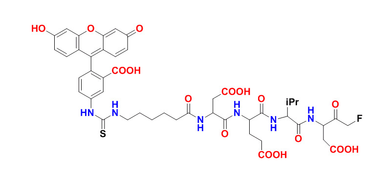 胱天蛋白酶的活化在細胞凋亡中發(fā)揮著主要作用。FITC-C6-DEVD-FMK提供了在活細胞中靈敏檢測活化的胱天蛋白酶-3的方便手段。FITC-DEVD-FMK是細胞滲透性的,無毒的,并且不可逆地結(jié)合到活化的胱天蛋白酶-3在細胞凋亡。在FITC標(biāo)記的可用于直接檢測活化的胱天蛋白酶的凋亡細胞可通過熒光顯微鏡,流式細胞儀,或熒光板讀數(shù)器進行。